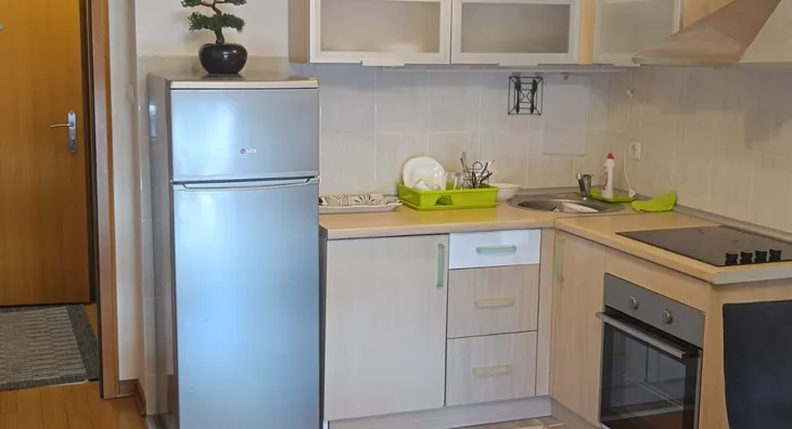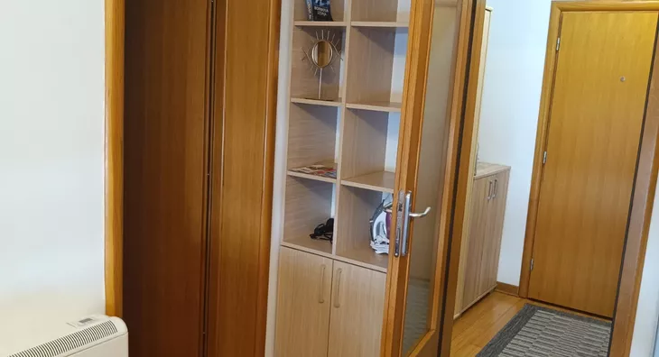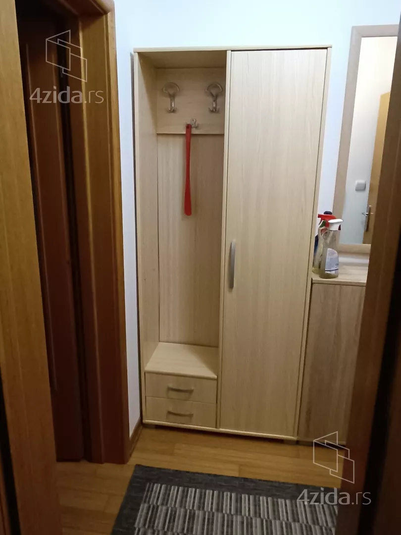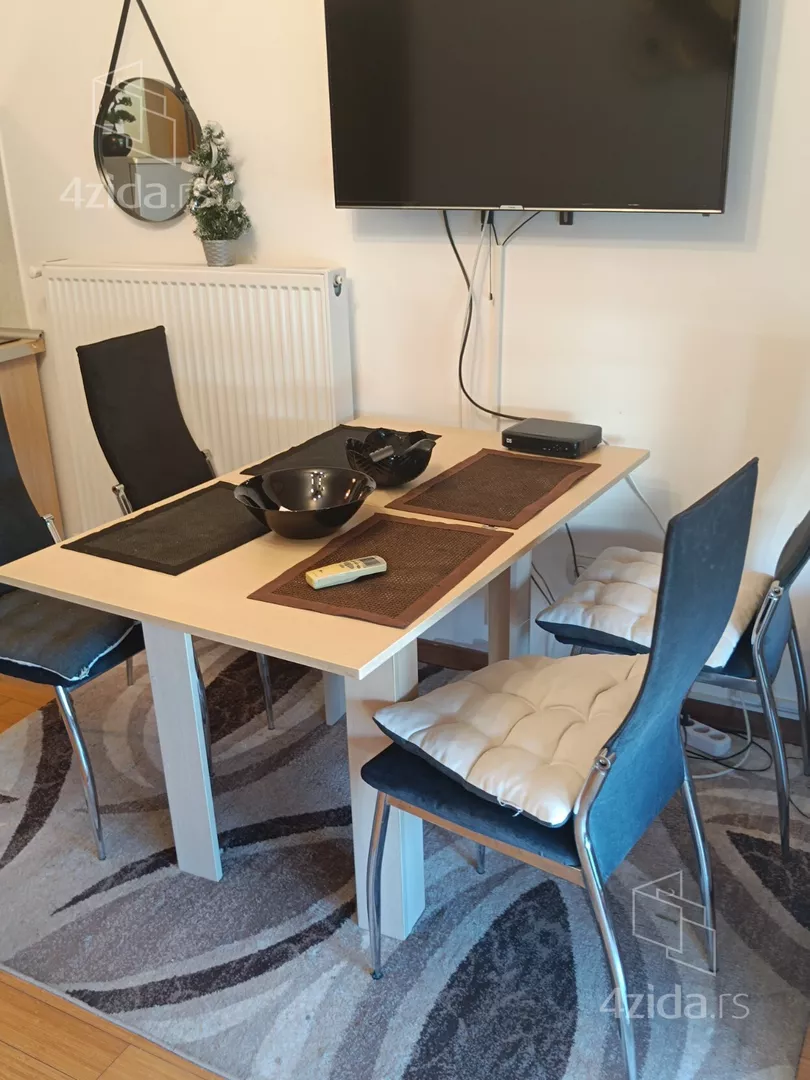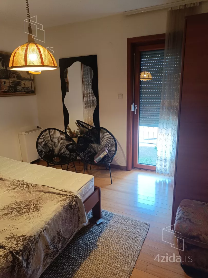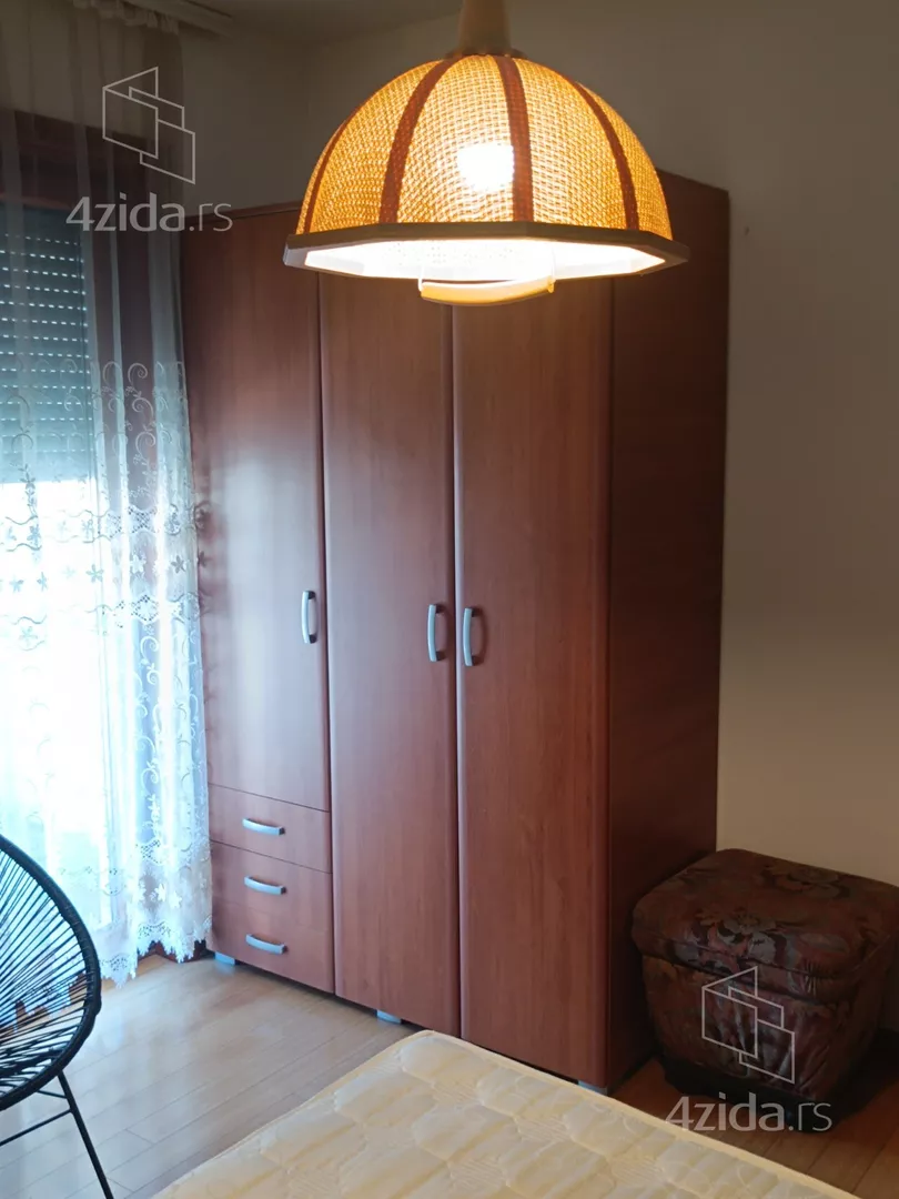 - Opremljenost: Namešteno - internet, TV, klima, ventilacija, veš mašina, kuhinjski elementi, frižider, zamrzivač, šporet, rerna, ležaj, plakar, ugradni plakar