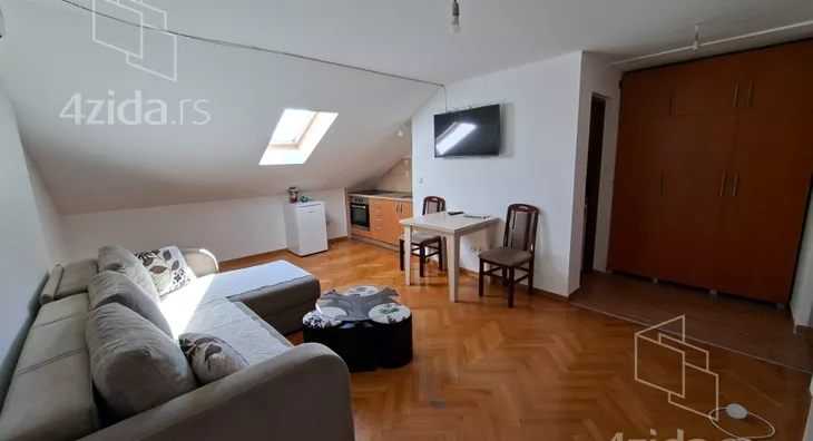 Na svega nekoliko koraka od Opštine, u samom centru Vrnjačke Banje, prodaje se potpuno opremljena garsonjera površine 30 m². Stan se nalazi na trećem spratu – potkrovlju stambene zgrade bez lifta i odmah je useljiv, bez dodatnih ulaganja.