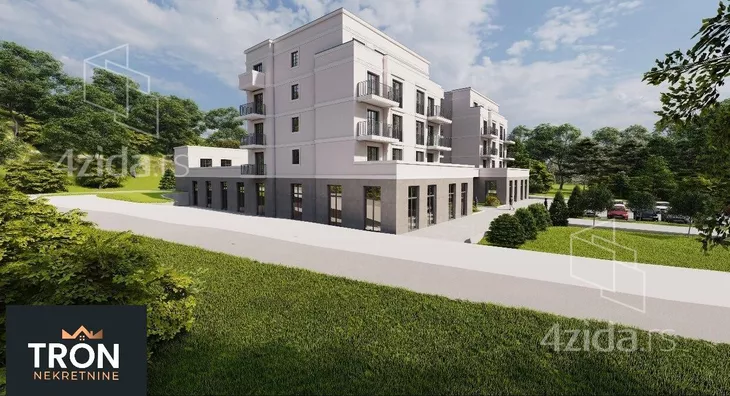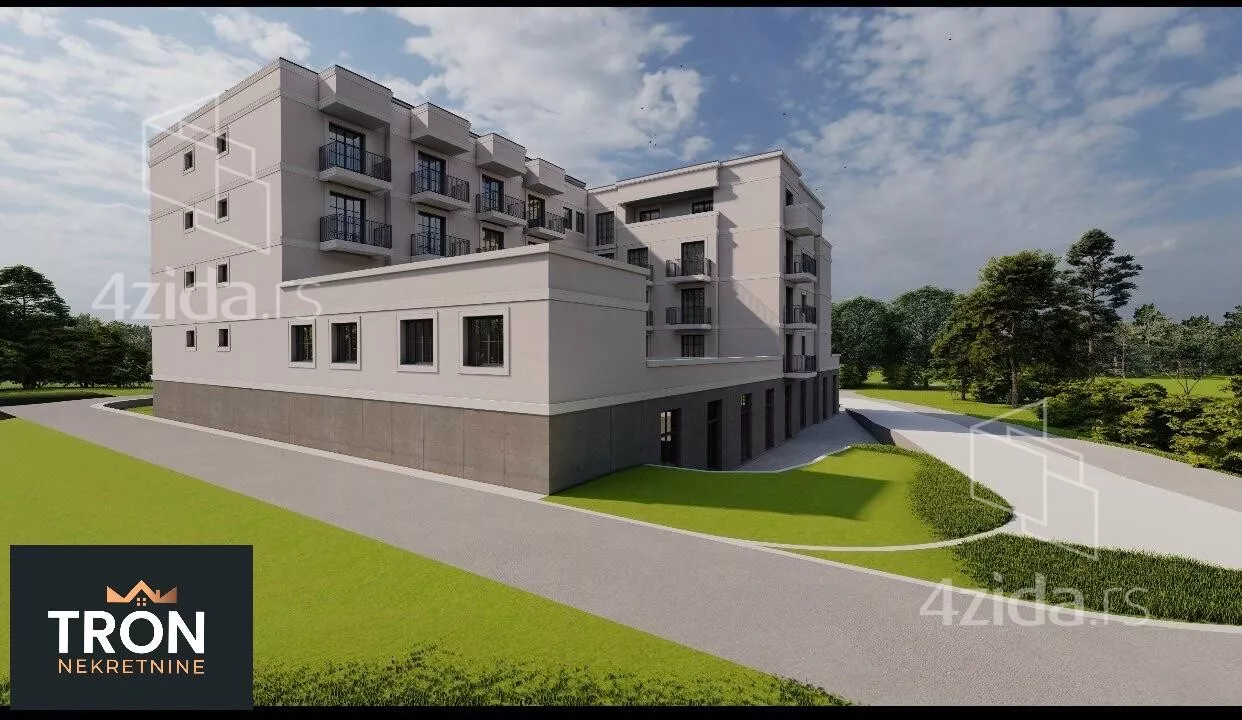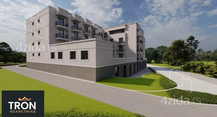 Ova moderna zgrada gradi se od kvalitetnih materijala, pružajući visoke standarde stanovanja.