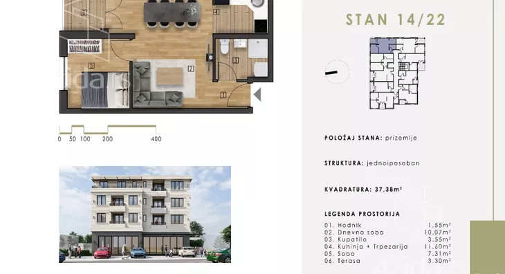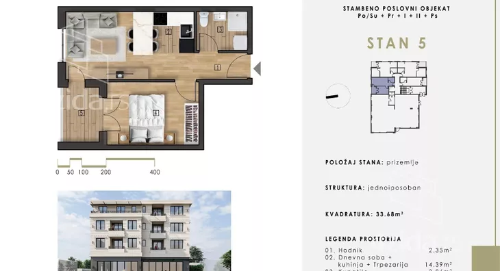 U ponudi su stanovi površine od 24 m² do 42 m² u modernoj stambenoj zgradi koja je u izgradnji, na odličnoj lokaciji u ravnom delu Vrnjačke Banje, svega nekoliko minuta hoda od centra.