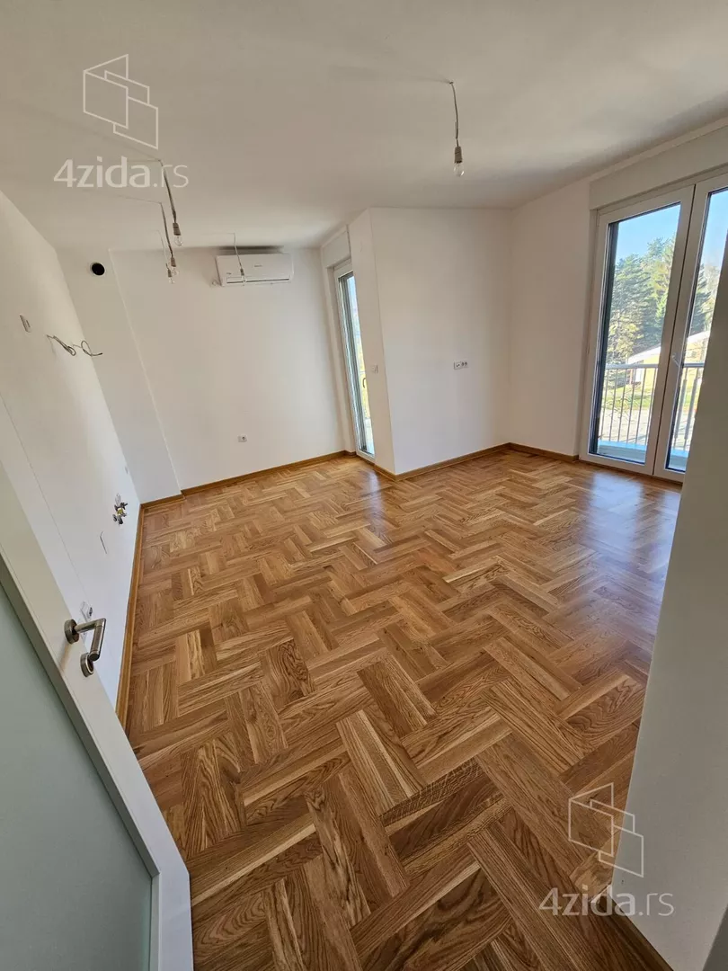 - hodnik, dnevna soba sa kuhinjom i trpezarijom, terasom i francuskim balkonom, komforna spavaća soba, kupatilo sa podnim grejanjem, terasa i francuski balkon