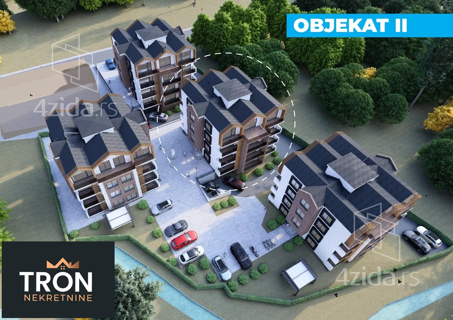 U modernom stambenom kompleksu sa ukupno 4 lamele ima 76 stanova površine od 33m2 do 59m²