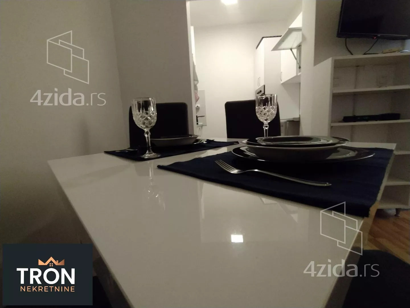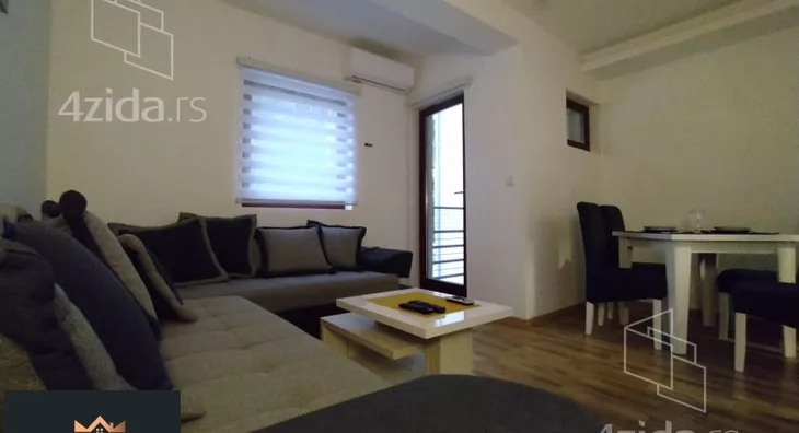 Ovaj potpuno opremljen stan površine 48m2, nalazi se na II spratu stambene zgrade.