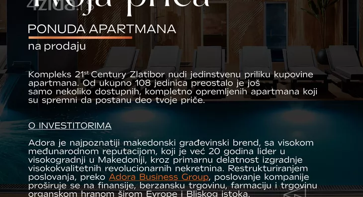 “21st Century Zlatibor Residence, Spa & Wellness by Adora” svim kupcima apartmana obezbeđuje dugoročan prihod i visoku profitabilnost investicije. Kompletan koncept osmišljen je po principu kondo apart-hotela, gde su vlasnici pojedinačnih apartmana različita fizička ili pravna lica,a čitav kompleks na tržištu posluje pod jedinstvenim brendom, nudeći usluge i sadržaje koji su konkurentni konvencionalnim hotelima.