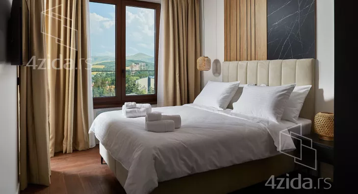 Kompletno lux opremljen jednosoban apartman (dnevna soba sa kuhinjom i trpezarijom, spavaća soba, kupatilo, terasa) u sklopu hotelskog kompleksa 21st Century Zlatibor Residence Spa & Wellness by Adora.