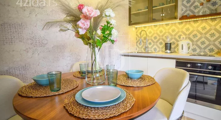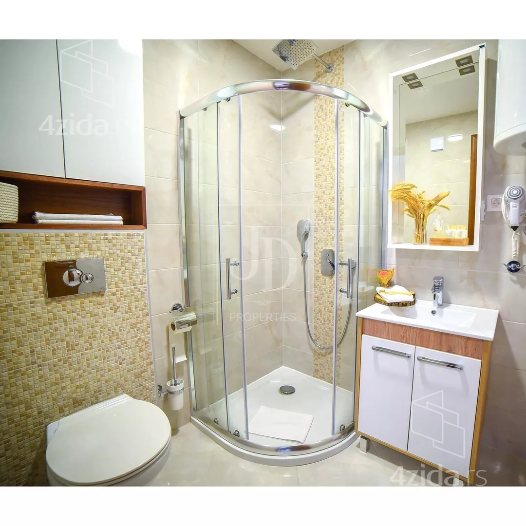 Stan je svetao i sastoji se od prostrane kuhinje sa trpezarijom, dnevnog boravka, spavaće sobe i toaleta.