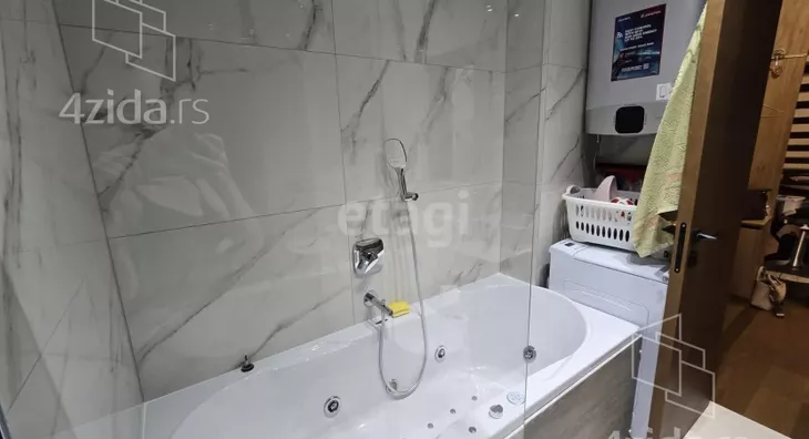 - Opremljenost: Namešteno - internet, TV, klima, veš mašina, kuhinjski elementi, sudo mašina, frižider, zamrzivač, mikrotalasna rerna, šporet, rerna, ležaj, plakar, ugradni plakar