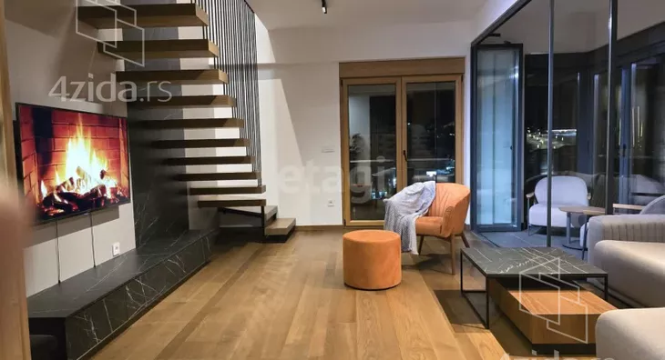 For sale: an exclusive duplex apartment perfectly located in the very center of Zlatibor, right next to Hotel Mona. Situated in a modern high-end smart building, this property offers a premium lifestyle with access to a private spa center, gym, and children's playroom – ideal for both year-round living and vacation stays. Spread over two levels, the apartment boasts sophisticated interior design with carefully selected furniture and appliances. Warm tones and elegant details create a cozy yet luxurious atmosphere. The layout includes a spacious living room, a fully equipped kitchen with dining area, two comfortable bedrooms, two stylish bathrooms, and a glazed terrace perfect for use in all seasons. Electric underfloor heating ensures maximum comfort, especially during winter months.