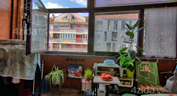 Prodaje se dvosoban stan na odličnoj lokaciji. Nalazi se na trećem spratu koji nije poslednji u zgradi bez lifta. Sastoji se od dnevnog boravka, spavaće sobe, kuhinje sa trpezarijom, kupatila i velike zatvorene terase. Papiri su uredni i moguća je kupovina putem stambenog kredita.