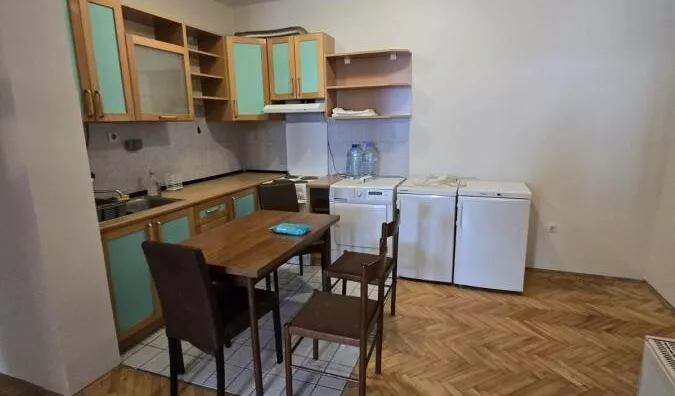 - Opremljenost: Prazno - internet, TV, klima, veš mašina, sudo mašina, frižider, rerna, ležaj, plakar, kanalizacija