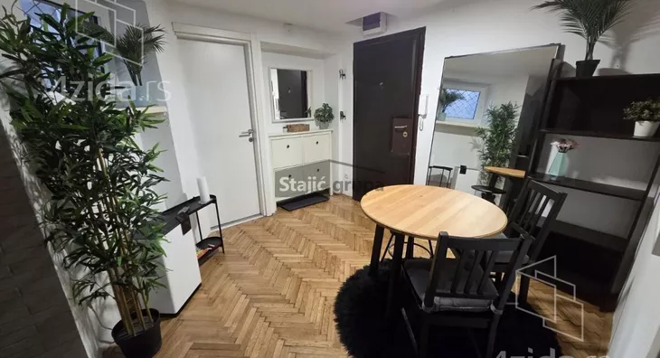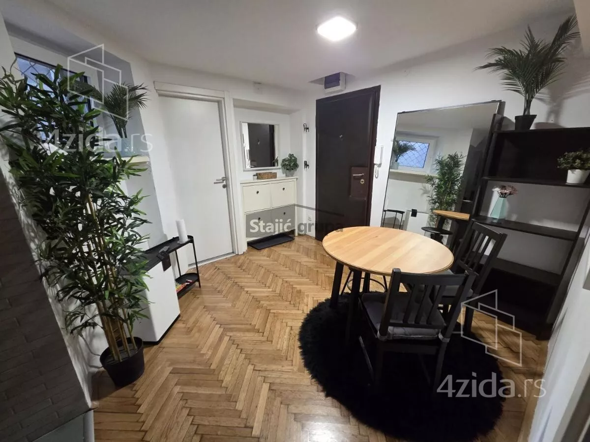 Kompletno renoviran, opremljen stan u održavanoj zgradi sa mermernim ulazom. Nalazi se na odličnoj lokaciji u neposrednoj blizini Skadarlije. Uknjižen na 29m2, korisno 38m2. Prostorije: predsoblje, dnevi boravak,kuhinja, trpezarija, kupatilo.