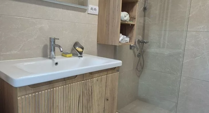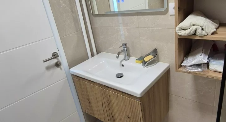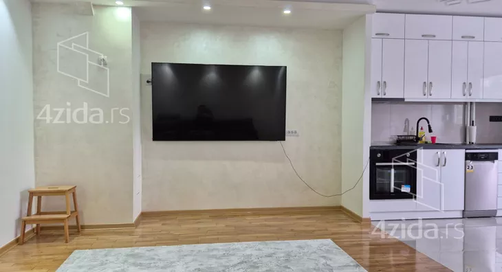 - Opremljenost: Namešteno - TV, klima, veš mašina, kuhinjski elementi, sudo mašina, frižider, zamrzivač, šporet, rerna, ležaj, plakar, ugradni plakar