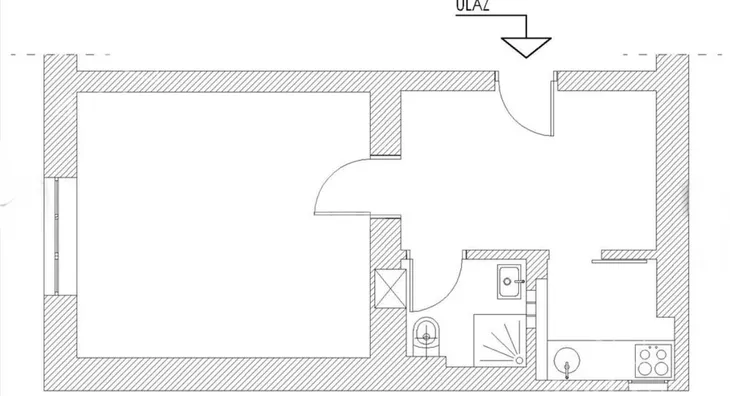 Stan poseduje kupatilo i dnevnu sobu sa kuhinjom i trpezarijom.