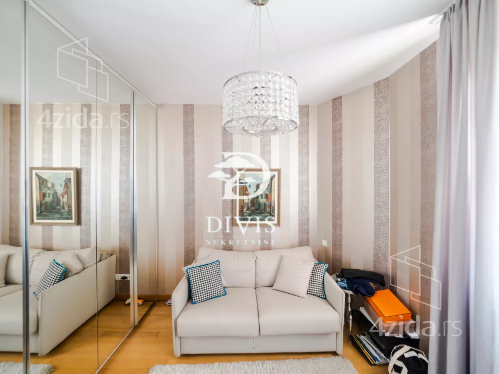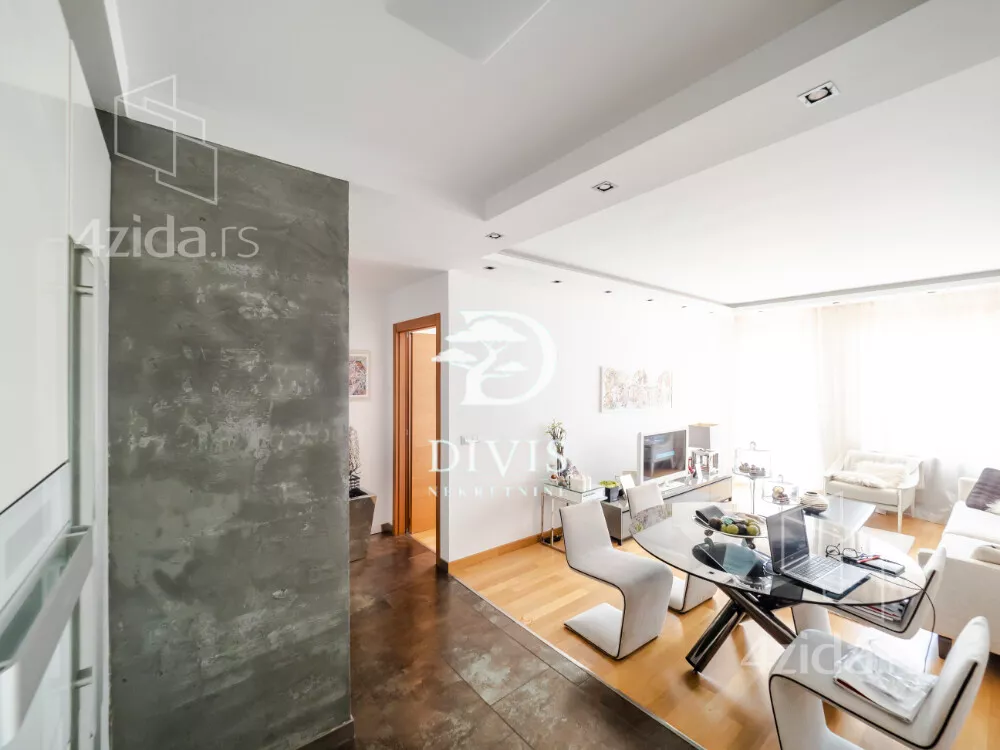 Stan se nalazi na trećem spratu zgrade iz 2010.godine. Jugozapadno je orijentisan, veoma svetao i odlično pozicioniran, zaštićen od ulične buke. Sastoji se od predsoblja, kuhinje i trpezarije, dnevne sobe, dve spavaće sobe, kupatila, toaleta i terase. Zgrada je građena materijalima vrhunskog kvaliteta, sa mermernim izlaloz. Stan je opremljen ALU-drvo stolarijom, split sistemom za hlađenje sa fancoil uređajima, u stanu ostaju ugradna kuhinja i plakari.