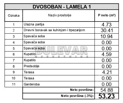 Na prodaju stan u Jagodin mali. U neposrednoj blizini nalaze se vrtić, škola, ambulanta, Pantelejska crkva, kao i brojne trgovinske radnje. Stan ima 53,23m2 projektovane površine, po strukturi je dvosoban. Sastoji se od ulaznog hodnika, dnevnog boravka sa delom za trpezariju i kuhinju, spavaće sobe, kupatila i terase. Kvalitetna novogradnja od pouzdanog investitora koji posluje preko dvadesetpet godina na našem tržištu. Stambeno-poslovni objekat Po+P+5, modernog dizajna i visokog kvaliteta gradnje, alubond i demit fasada, spoljna PVC stolarija sa aluminijumskim roletnama, podne obloge od tarketa i keramike renomiranih proizvođača, sanitarija vrhunskog kvaliteta, bešumni lift. Svaka stambena jedinica dobija invereter klimu u dnevnom boravku i norveške radijatore u spavaćim sobama. Za kupce prvog stana postoji mogućnost povratka PDV-a, uz stan se može kupiti i parking mesto na praceli ili u podzemnoj garaži. Završetak radova lamele 1 se očekuje početkom 2027-me godine, a lamele 2 i 3, krajem 2027-me godine. Ovo je samo deo naše ponude, ovaj kao i druge stanove sa većim brojem fotografija možete pogledati na našem sajtu.