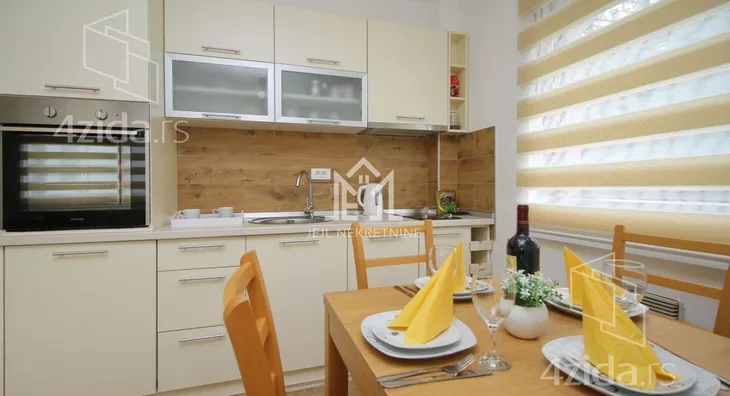 - Opremljenost: Namešteno - TV, veš mašina, sudo mašina, frižider, rerna, ležaj, plakar