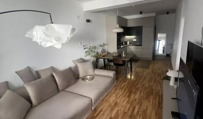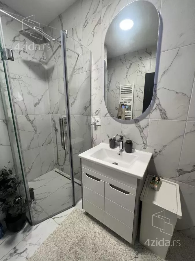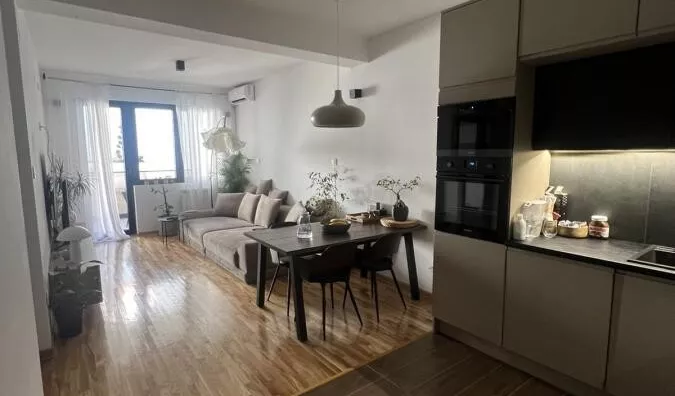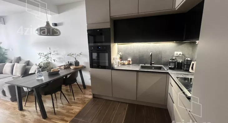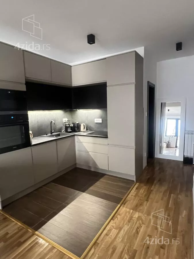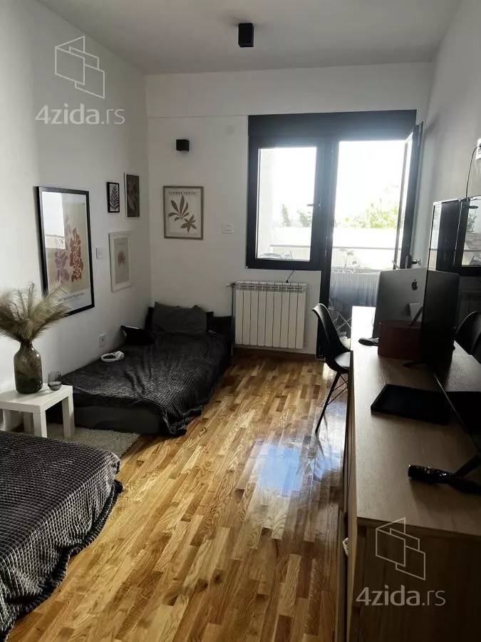 Prelep stan na odličnoj lokaciji. Zgrada je vrhunske gradnje, a u okviru nje se nalazi bazen i teretana .Stan je na visokom prizemlju, ali visine prvog sprata. Sastoji se od dnevno- kuhinjsko-trpezarijskog dela , spavaće sobe, kupatila, ostave i terase koja gleda na dvorište.Grejanje je CG, sa kalorimetrima. Izuzetna prilika. Retko u ponudi. Ag. provizija 2%.