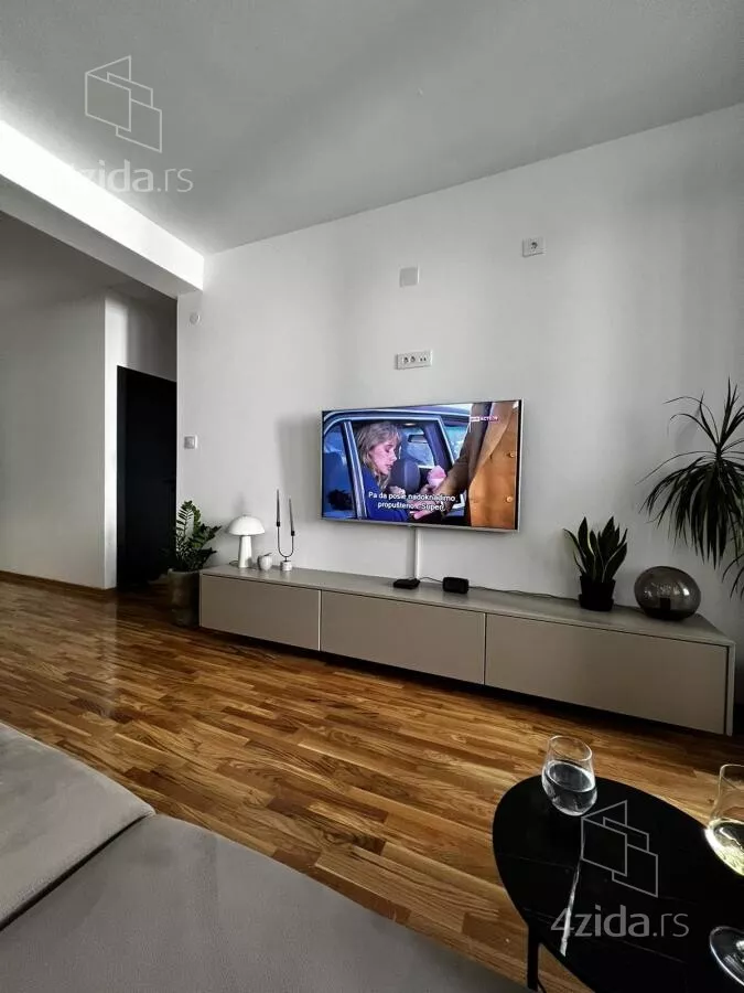 Prelep stan na odličnoj lokaciji. Zgrada je vrhunske gradnje, a u okviru nje se nalazi bazen i teretana .Stan je na visokom prizemlju, ali visine prvog sprata. Sastoji se od dnevno- kuhinjsko-trpezarijskog dela , spavaće sobe, kupatila, ostave i terase koja gleda na dvorište.Grejanje je CG, sa kalorimetrima. Izuzetna prilika. Retko u ponudi. Ag. provizija 2%.