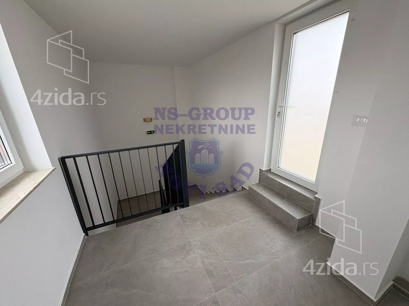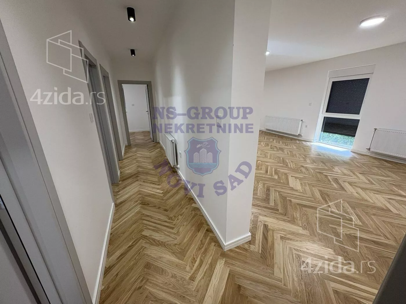 Komforan i prostran nov četvorosoban stan. Iz ulaznog hodnika sa prostorom za plakar se ulazi pravo u veliki dnevni boravak sa kuhinjom, trpezarijom i terasom, na koju se pristupa preko velikog staklenog portala. Ova dnevna zona stana ima nešto više od 50 m². Stan ima odvojenu noćnu zonu sa hodnikom iz kog se ulazi u 3 spavaće sobe, toalet i veliko kupatilo sa prirodnom ventilacijom, luksuznom španskom keramikom, svim novim sanitarijama i walk in tušem. Grejanje je na gas, stolarija je PVC sa troslojnim staklom punjenim argonom, termoizolacija je od stiropora debljine 10 cm, pod je od hrastovog parketa velikih dimenzija a ulazna vrata su visokokvalitetna i sigurnosna.U ceni stana su dva parking mesta i ostava u hodniku odmah pored stana. Objekat ima videonadzor, kao i video interfone, kapija za parking se otvara na daljinski, a objekat sa svih strana ima noćno dekorativno osveljenje. Ovom stanu pripada krovna tersa oko 100m2 sa koje se pruža predivan pogled na Frušku goru, grad, ima struju, vodu-savršena za uživanje. Ublizini Gradski prevoz,Osnovna škola,vrtić,pošta,marketi,taxi stajalište, itd. Savršen porodičan stan koji vredi videti. Po isplati odmah useljiv. Naša preporuka. Pozovite. 064... (prikaži broj telefona) Vesna