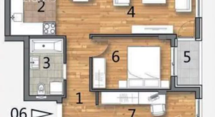 Trosoban stan od 64 m2 na četvrtom spratu sa uličnim pogledom.
