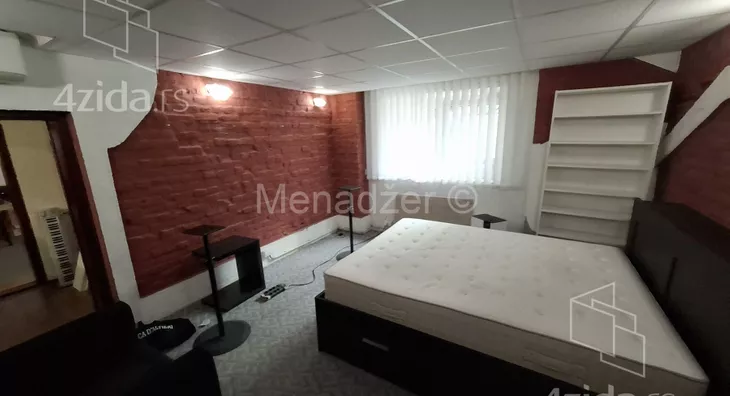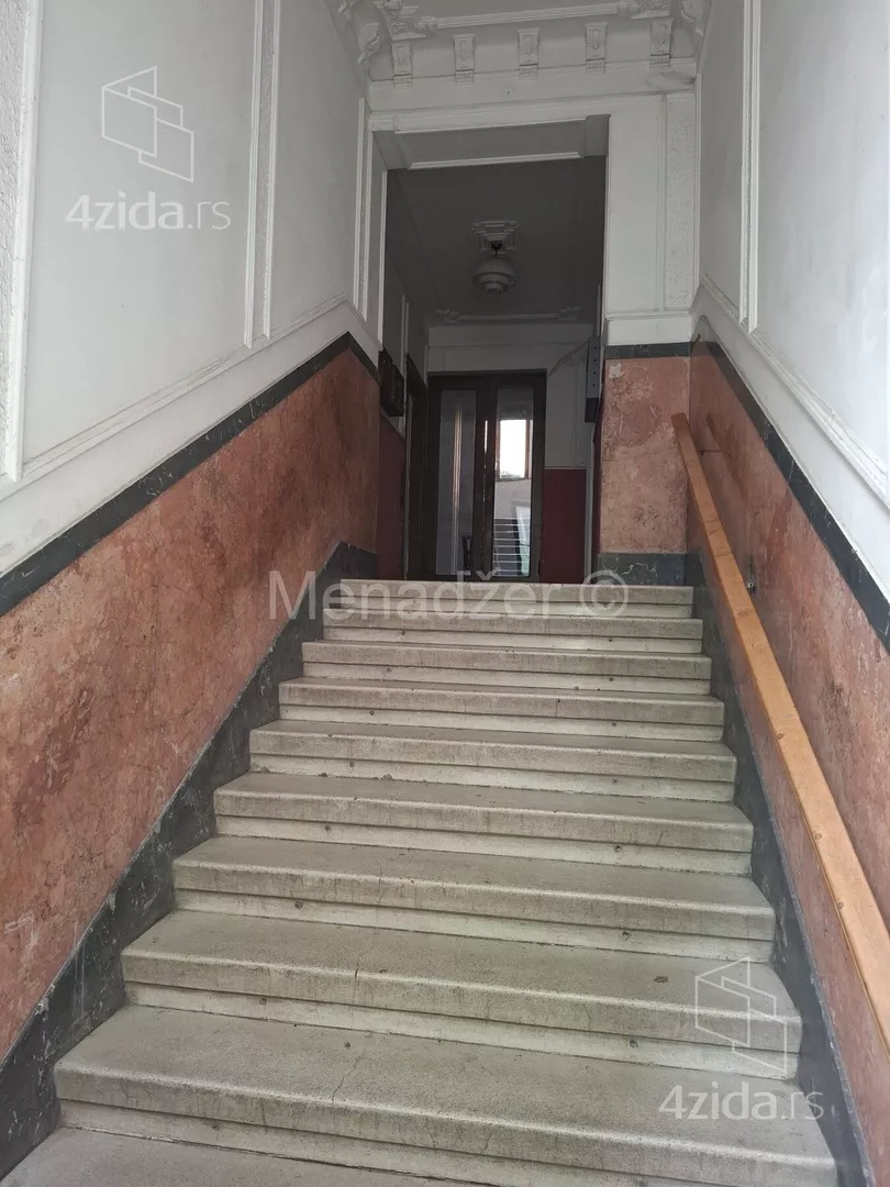Stan se nalazi u zgradi salonskog tipa, ocuvanoj, sa karakterisiticnim mermenim ulaziom, u poplusuterenu, sa normalnom visinom plafona. Stan je do nedavno koriscen kao kombinacija radnog i zivotnog prostora, sto je ujedno i savrsen spoj. Radjena je struja i voda, kupatilo i wc, tako da uz odrednjene korekcije u skladu sa potrebama novog vlasnika, moze biti jako lep prostor za razne namene. Za grejane se korisiti centralana inverer klima sa 3 unutrasnje jedninice.