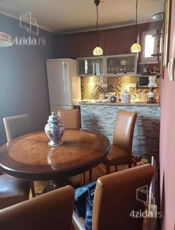 U najboljem delu Karaburme, mirnom i tihom, kod stare okretnice, nalazi se ovaj prelep stan , potpuno renoviran, bez ikakvih ulaganja.Promenjene su sve instalacije, elektro, vodovodne, drvenarija, sve je prvoklasno urađeno. Stan je dvosoban, ali funkcionise kao dvoiposoban jer je kuhinja povezana sa dnevno trpezarijskim boravkom i pored toga ima veliku dnevnu i manju spavaću sobu. Raspored je idealan, jer se iz hodnika ulazi u sve prostorije..Na stanu je rađena spoljna izolacija, a ima i ostavu koja je preuređena u veliki, moderni i vrlo funkcionalan garderober, kao i lepu popločanu terasu. Prodaje se sa ugradnim elementima i norveškim radijatorima.