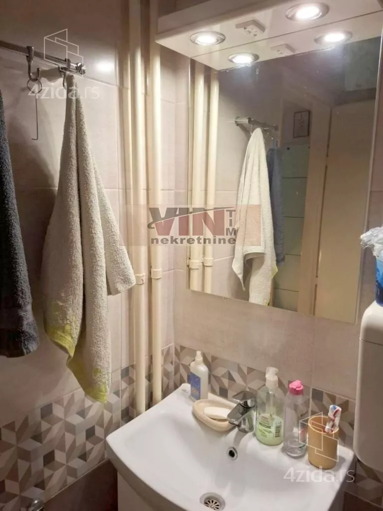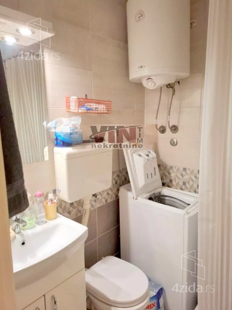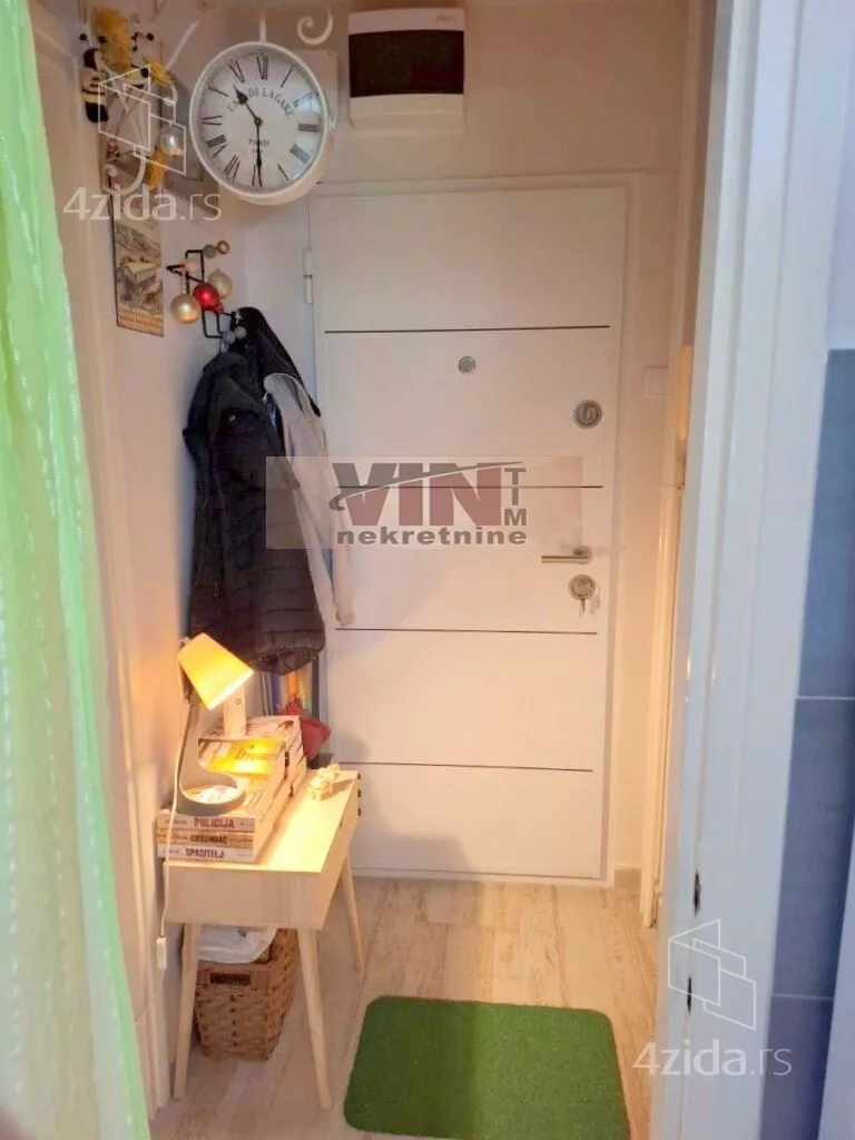 Iz malog predsoblja se ulazi u kupatilo, desno je prostorija koja služi kao garderober.U toj prostoriji je izvorno bila mala kuhinja. Grejanje je centralno.Uknjižen na 24m2 na sadašnjeg vlasnika.