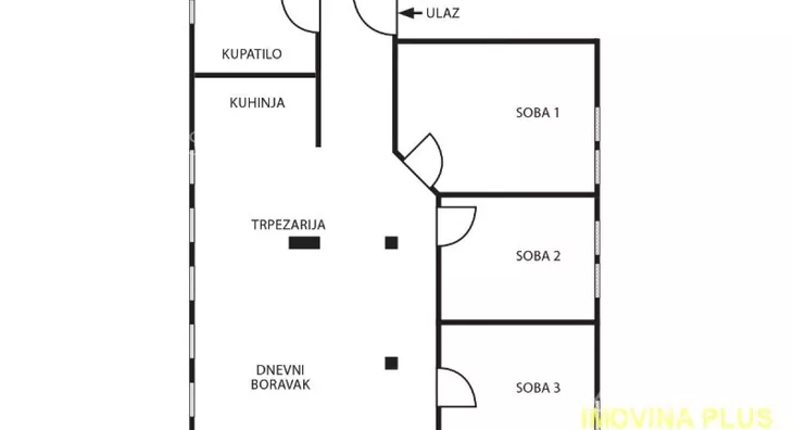 Prostorije: dnevni boravak, kuhinja, tri odvojene sobe, kupatilo, pripadajući podrum.