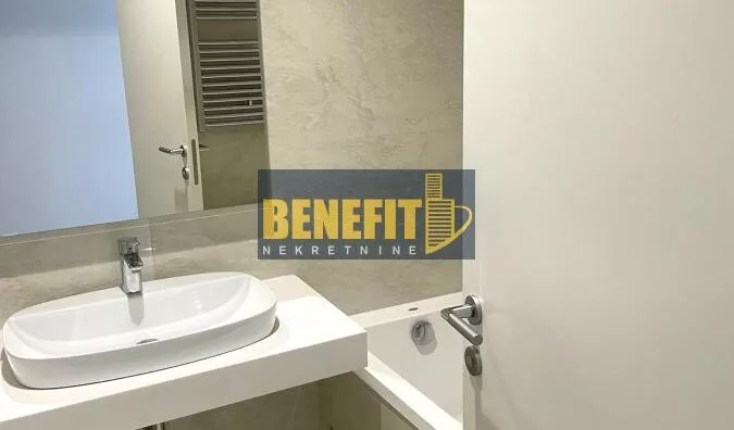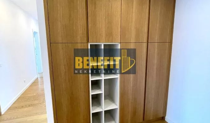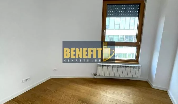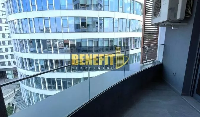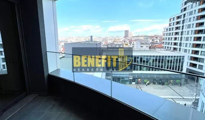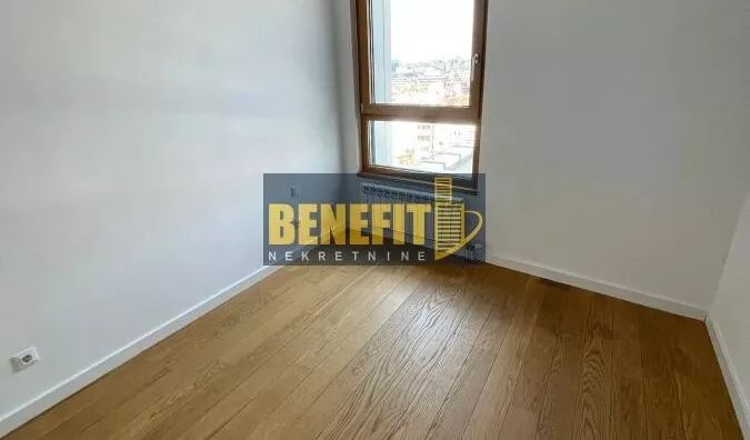 Stan u rezidencijalnoj zgradi Skyline, površine 107m2. Sastoji se od dnevne sobe, povezane sa kuhinjom i trpezarijom, tri spavaće sobe, vešernice, dva kupatila, gostinjskog toaleta i velike terase. Stan je dvostrano orijentisan. S jedne strane okrenut je ka Sarajevskoj ulici, i ima pogled koji se proteže do Dorćola i Skupštine, a sa druge strane gleda ka ulici Kneza Miloša. Sama zgrada je sa 24h obezbeđenjem i recepcijom, a u njoj se nalaze i kafić, spa centar sa bazenom i teretanom. Kompleks je formiran tako da u susednoj zgradi postoji office prostor, kao i restorani i prodavnice prehrambene robe.