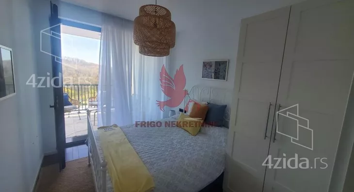 Šifra: 3s509 Prodaje se izuzetno lep, kompletno namešten stan površine 62 m², smešten u mirnom stambenom kompleksu na Kosmaju, okružen prirodom i svežim vazduhom – idealan za one koji traže oazu mira na samo sat vremena vožnje od Beograda. O prostoru: Stan je savršenog rasporeda i organizacije, sređen u toplom i prijatnom boho-modernom stilu, sa pažljivo biranim detaljima. – dnevni boravak sa kuhinjom i trpezarijom – svetao, funkcionalan i lepo uređen, sa direktnim izlazom; na ušuškanu veliku terasu koja nudi potpunu intimu i očaravajući pogled na prirodu – dve spavaće sobe – glavna soba sa bračnim krevetom i velikim ormarom, druga soba sa krevetom za jednu osobu i plakarom; iz jedne spavaće sobe se, takođe, izlazi na terasu; – kupatilo – moderno, sa savremenom opremom; – hodnik – povezuje sve prostorije na praktičan način; – podrum – pripadajući, odličan za dodatno skladištenje. Svetlost i povezanost s prirodom: Veliki prozori i terasna vrata omogućavaju obilje prirodne svetlosti i stvaraju utisak povezanosti sa okolinom, uz osećaj prostorne širine i slobode. Tehnička opremljenost: – klima uređaj za dodatni komfor tokom toplijih dana; – parking obezbeđen rampom, sa više dostupnih mesta za stanare. Lokacija i dodatne pogodnosti: Stan se nalazi u okviru stambenog kompleksa koji je u razvoju, a u planu je i izgradnja hotela kao centralne jedinice, što dodatno povećava vrednost ove nekretnine. 📍 Mirno okruženje, čist vazduh, blizina Beograda, odlična povezanost i izuzetna prilika za život u prirodi ili kao investicija. 📝 Stan ima upotrebnu dozvolu i postoji mogućnost kupovine putem stambenog kredita za mlade. 🎯 Idealno za one koji traže moderan, gotov stan na planini – za život, odmor ili izdavanje. Ukoliko želite više informacija, pozovite broj: +38... (prikaži broj telefona) - Nataša +38... (prikaži broj telefona) - Tanja Angecijska provizija 3%
