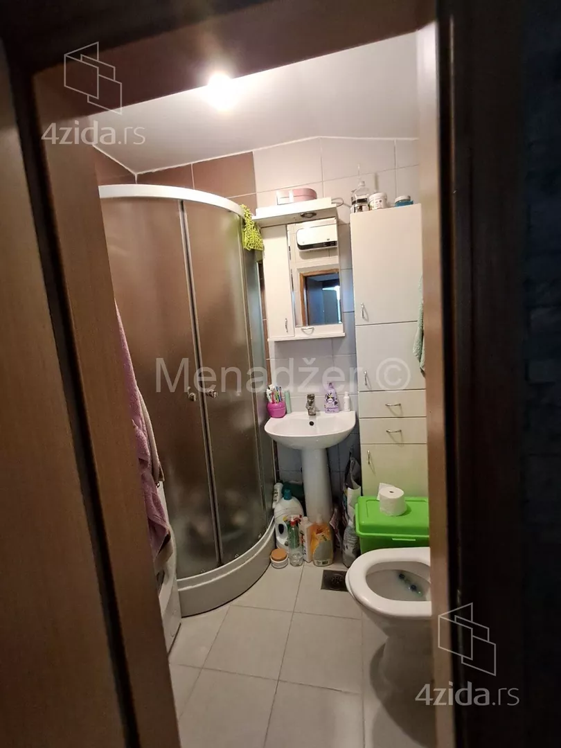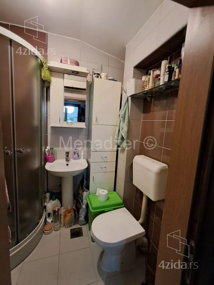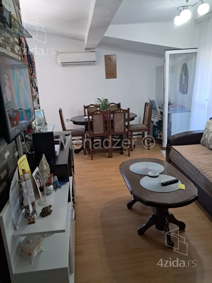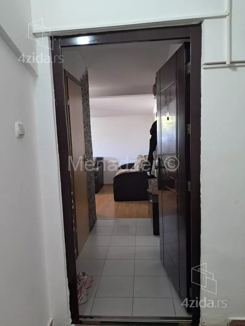 Stan je funkcionalan iz hodnika se ulazi u sve prostorije u stanu, desno je velika spavaca soba, sada podeljena plakarom na dve manje, levo kupatilo a pravo je dnevni boravak sa otvorenom kuhinjom koja ima i trpezariju, svaka prostorija ima svoj prozor.