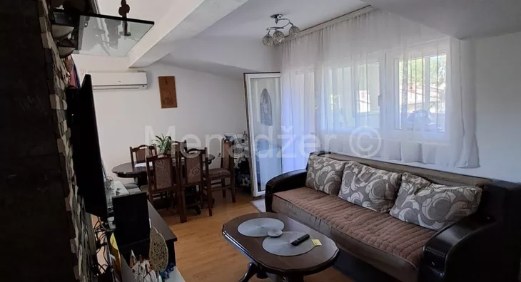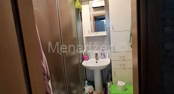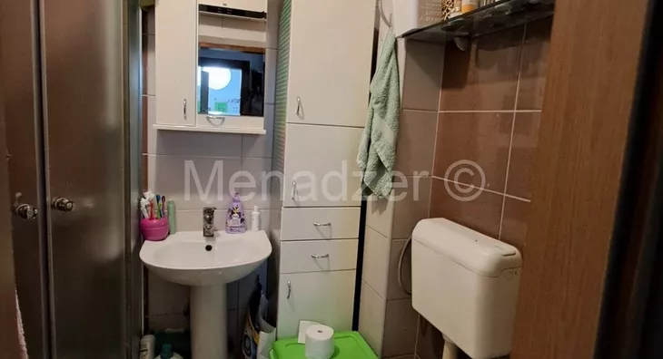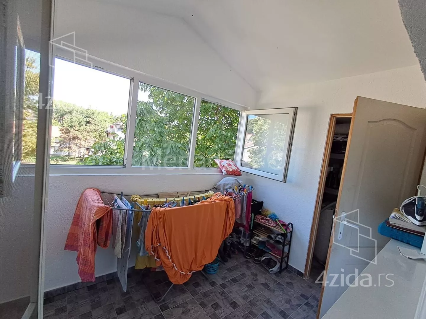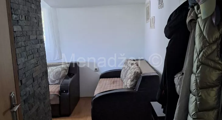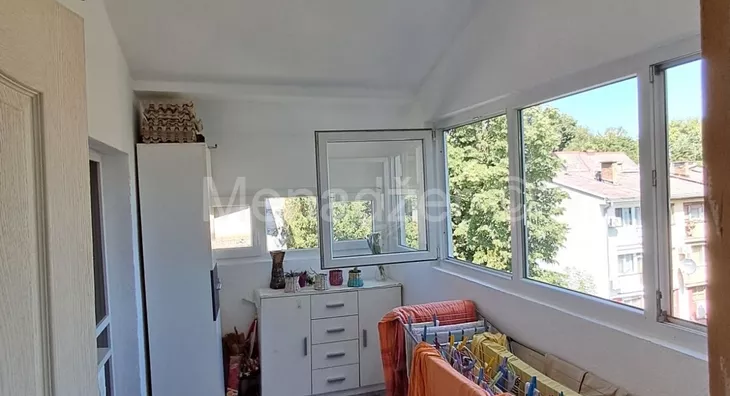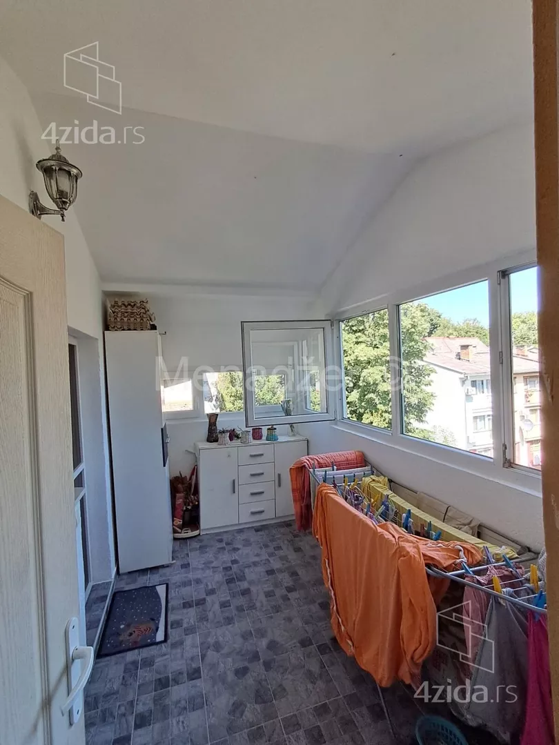 Stan sredjen bez ulaganja sa velikom zastakljenom terasom od 10m2 koja ima i odvojenu ostavu sa svojim prozorom.