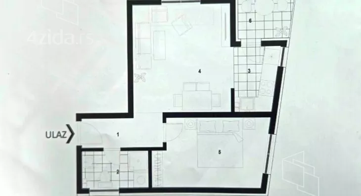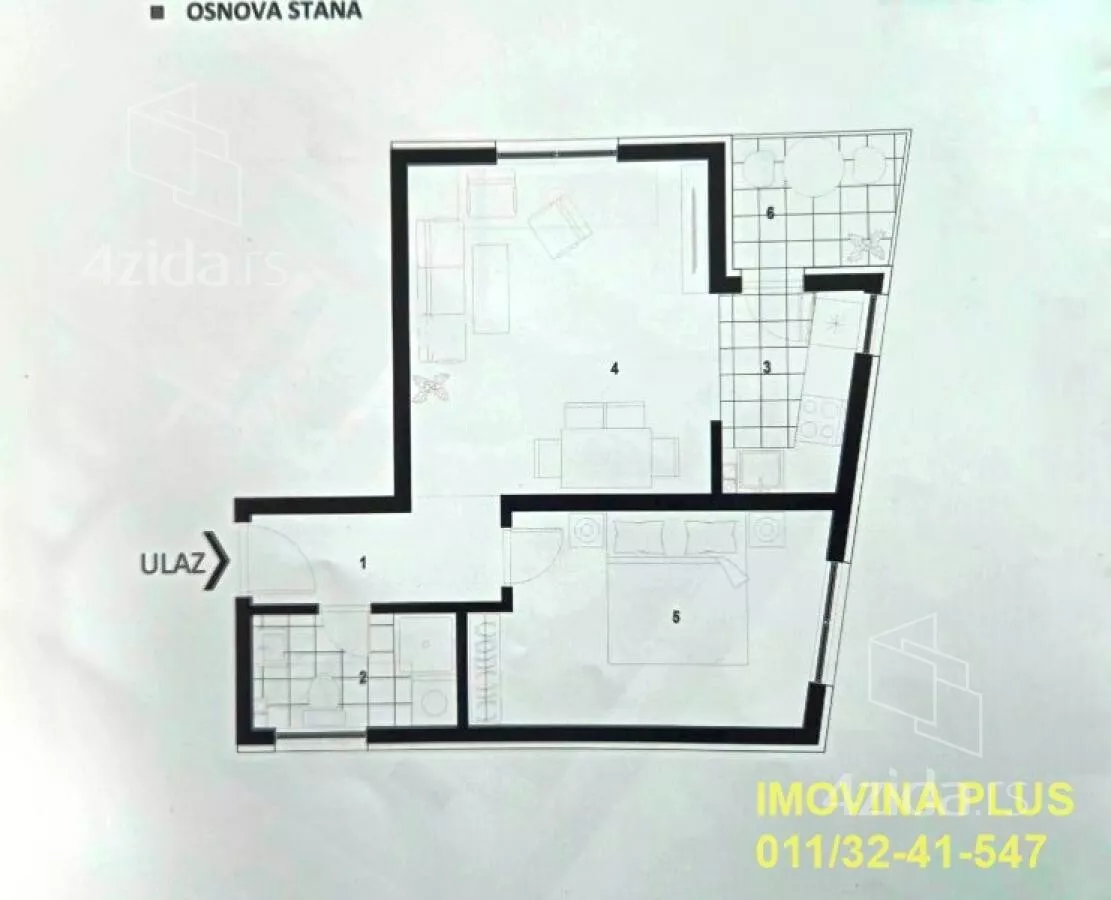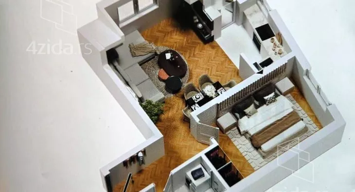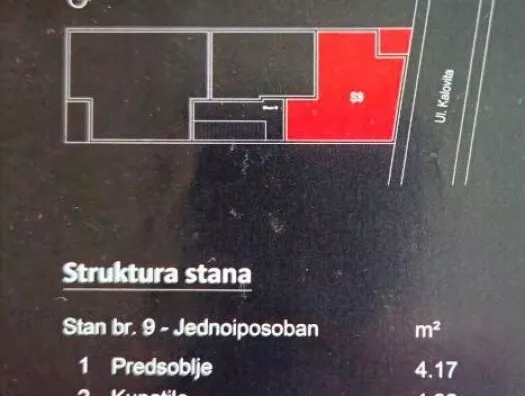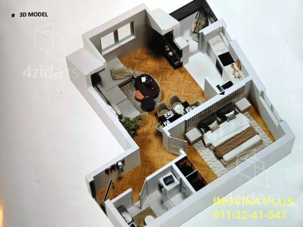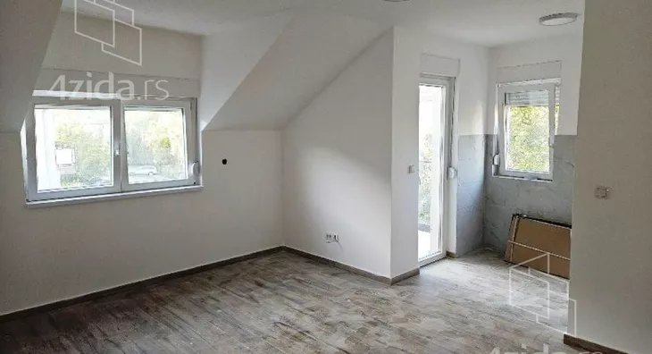 Prostorije: ulazni hodnik, kuhinja, dnevna soba sa trpezarijom, spavaća soba, kupatilo i terasa. Mogućnost kupovine na kredit.