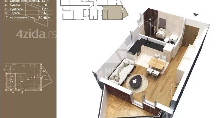 Jednosoban stan na prodaju, Veletinska, 61.000€, 30m²