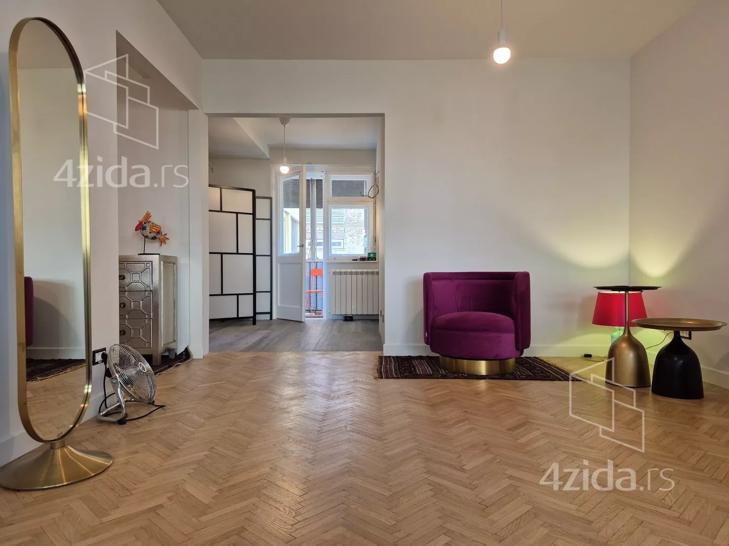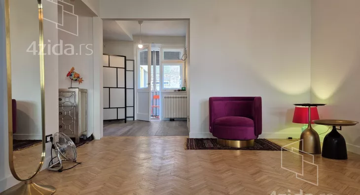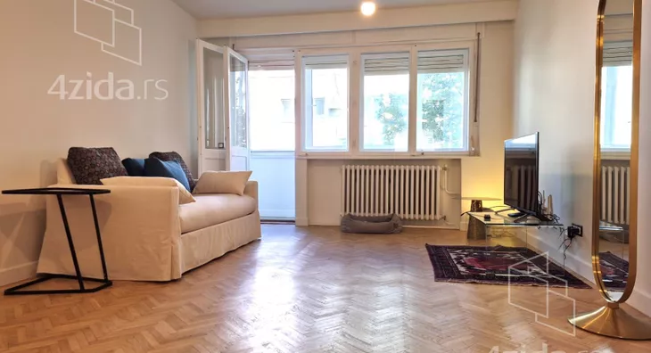 An apartment for sale in Desanke Maksimovic, a few minutes away from Tašmajdanski Park and Cvetni trg. Positioned on the 4th floor, double-sided, bright, comfortable. Completely renovated. It consists of two large rooms (25 m2 and 22 m2), kitchen, bathroom, loggia, balcony and a small storage room. The entrance to the building is well maintained. There is a parking lot for tenants in the yard of the building. The measured area of the apartment is 69 m2.