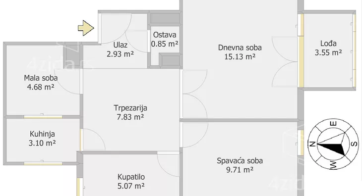 Izvorno 2-soban, adaptiran u 2.5-soban.
