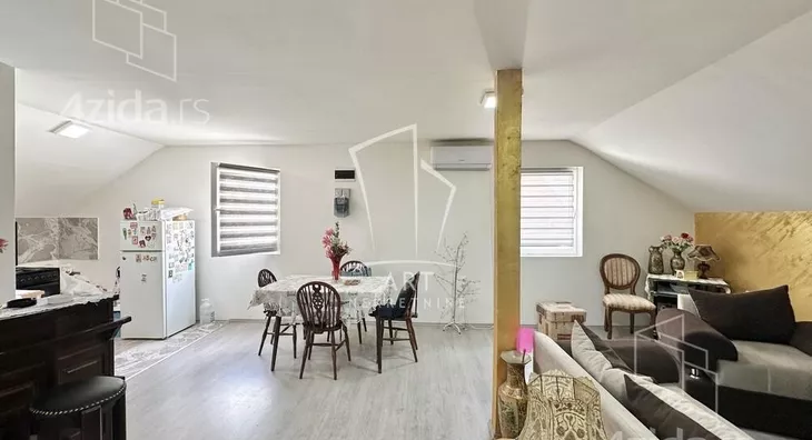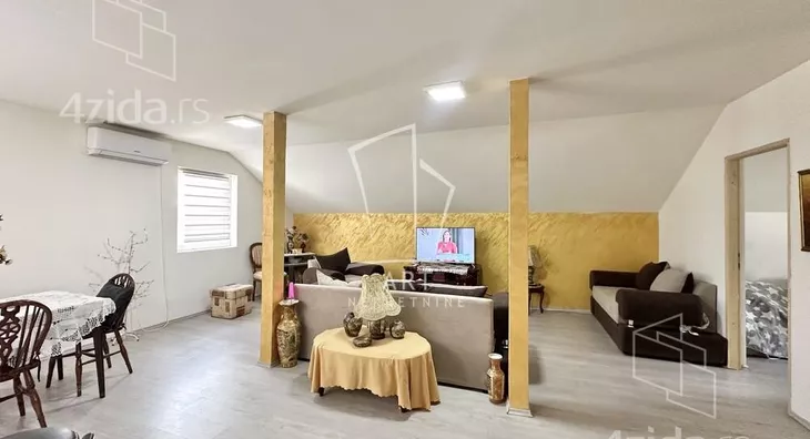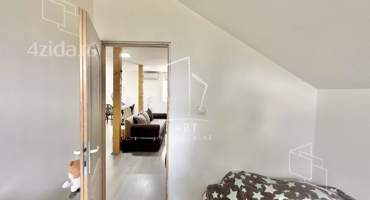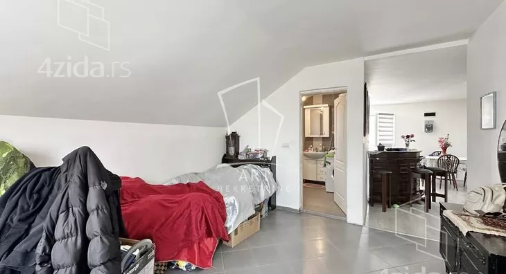 Nov stan sa zasebnim ulazom na prvom spratu porodične kuće uknjižen kao posebna stambena jedinica. Sastoji se od velike dnevne sobe sa trpezarijom i kuhinjom, kupatila i dve spavaće sobe. Adaptibilan u četvorosoban. Grejanje na inverter, dobra izolacija. Parking u dvorištu. Korisna površina 82m2, iznad stana neiskorišćen tavanski prostor. Agencijska provizija 2% Agent: Darko Slivar br. licence 4162 “Art nekretnine“ d.o.o. Beograd. Reg. br.339 011... (prikaži broj telefona) .