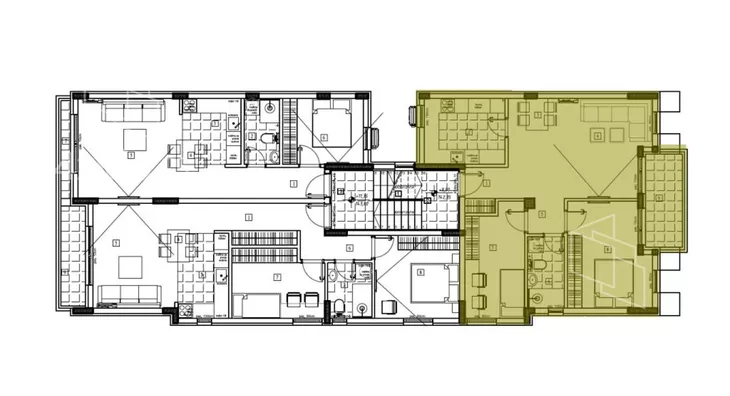 Stan je dvostrano orijentisan, sa pogledom ka Tetovskoj ulici. Raspored prostorija je idealan: prostran dnevni boravak sa trpezarijom i izlazom na terasu, kuhinja, kupatilo i dve spavaće sobe. Funkcionalan plan pruža dovoljno mesta za garderobere, dok centralni deo stana – dnevni boravak povezan sa trpezarijom – predstavlja savršeno mesto za porodična okupljanja i uživanje. Stan se nalazi u središnjem delu zgrade, čime se postiže bolja toplotna izolacija i značajno smanjuju troškovi grejanja i hlađenja. Raspored prostorija pruža dovoljno mesta za garderobere i lako se uklapa u moderne stilove enterijera. Pored ovog stana na drugom spratu, u ponudi je i stan iste strukture na trećem spratu zgrade. Zgrada ne poseduje lift.