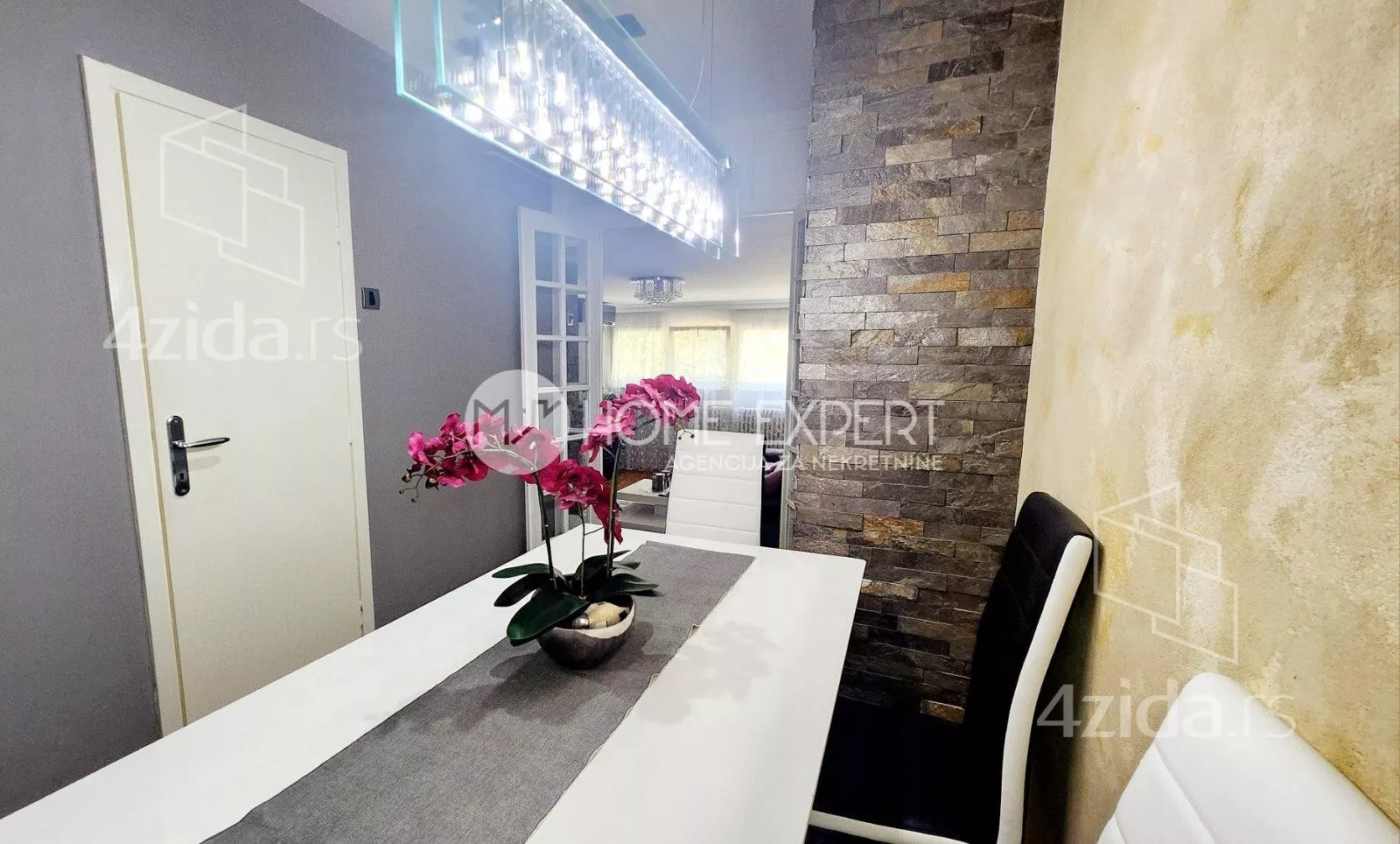 LIMAN 3 kod Limanskog parka, prodaje se luksuzno opremljen četvorosoban stan od 89m2. Stan se nalazi na prvom spratu, kompletno je renoviran i opremljen vrhunskim i skupocenim nameštajem i tehnikom. Prodaje se sa nameštajem. Poseduje dnevnu sobu,kuhinju sa prirodnom ventilacijom, trpezariju, dve spavaće sobe, jednu veliku zatvorenu terasu koja je pretvorena u sobu, kupatilo,zaseban toalet i terasu. Fenomenalna i vrlo tražena lokacija kao i jedinstven enterijer izdvajaju ovaj stan od ostalih iz ponude. Takođe,ovaj stan ima mogućnost i proširenja. Sve što je potrebno za moderan život, nalazi se u neposrednoj blizini - marketi, škola, vrtići, pijaca, Dom zdravlja i stanice javnog prevoza. Stan je uknjižen 1/1. Za više informacija pozvati na 060... (prikaži broj telefona)