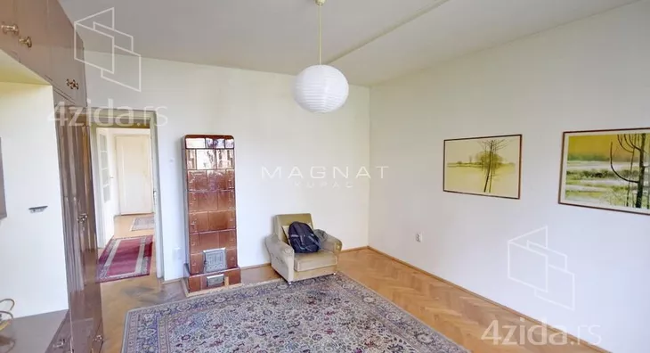 Prodaje se jednoiposoban stan . Nalazi se u mirnom kraju Crvenog krsta, u ulici Svetomira Nikolajevića, između bulevara Kralja Aleksandra i ulice Vojislava Ilića. Stan je dvostrano orijentisan, svetao i osunčan, sa hrastovim parketom, na trećem spratu četvorospratne zgrade sagrađene 1959. godine, bez lifta. Nedavno je urađena hidro-izolacija krova, termo-izolaciona fasada cele zgrade i u stanu su ugrađeni visokokvalitetni PVC prozori. Površina i namena prostorija: Visina: 265 cm. Stanu pripada podrum, 4 m2, kao i parking mesto u ograđenom dvorištu zgrade. Stan ima ugrađene plakare u predsoblju, sa isplativim grejanjem pomoću kaljeve peći sa ugrađenim električnim grejačima, malih mesečnih troškova režija. Pored interfona i telefonske linije, uvedena je instalacija sa optičkim kablom za pristup internetu i kablovskoj televiziji. U blizini su brojne autobuske, tramvajske i trolejbuske linije, osnovna škola, prodavnice, pekare, restorani i ispostave banaka i pošte. 1812 Oznaka na mapi pokazuje deo grada, ne i tačan položaj zgrade.