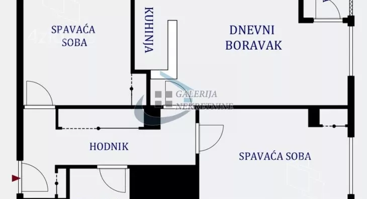 Od prostorija: hodnik, dnevni boravak objedinjen sa kuhinjom i trpezarijskim delom, dve spavaće sobe, kupatilo, lođa.
