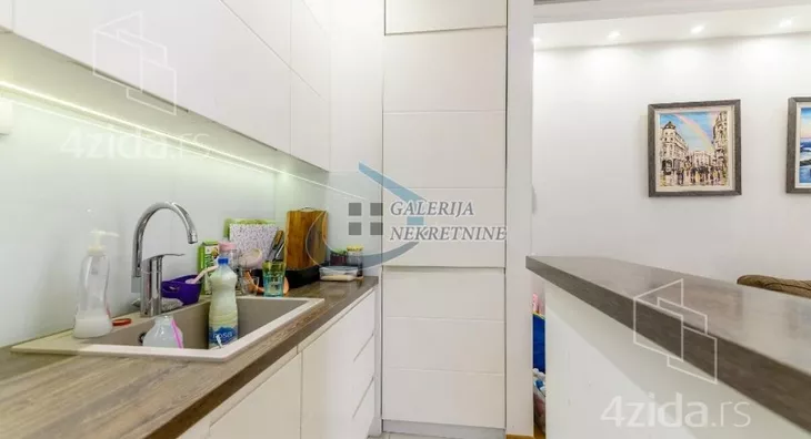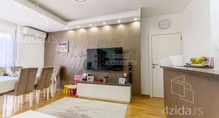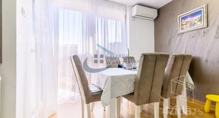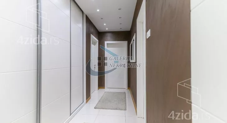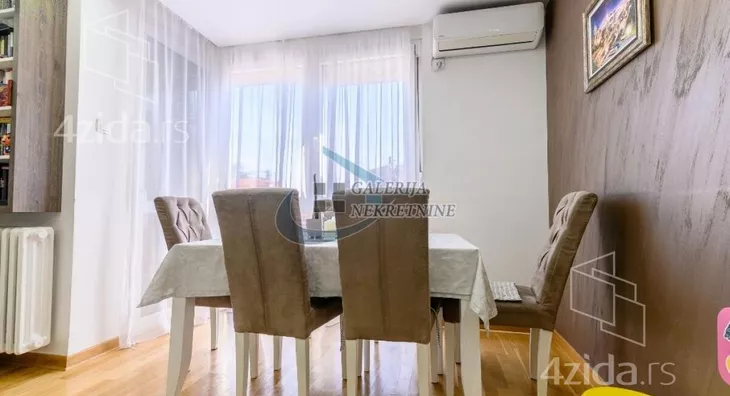 U prilici smo da Vam ponudimo izuzetan, komforan trosoban stan na petom spratu osmospratne zgrade kvalitetno zidane i dobro održavane. Dvostrana orijentacijentisanost stana obezbeđuje dosta dnevnog svetla a spratna visina izolovanost od gradske buke. Sve prostorije su komotne i funkcionalno raspoređene (u sve se ulazi iz centralno pozicioniranog hodnika). Odlično organizovan prostor koji je osmišljen da se iskoristi maksimum postojeće kvadrature. Dnevni boravak deli prostor sa trpezarijskim delom i kuhinjom u modernom open space stilu. Stan je kompletno i vrlo kvalitetno renoviran pre nepunih pet godina pa dodatna ulaganja apsolutno nisu potrebna. Izmenjene su sve instalacije (elektro i vodovodne, a i kanalizacione), zamenjena je stolarija (unutrašnja i spoljašnja). U stanu ostaju ugradni plakari i kuhinja sa uređajima. Velika pogodnost je što stan ima svoje parking mesto koje je natkriveno, a pristup je kroz dvorišnu kapiju na daljinski upravljač. Grejanje je centralno.