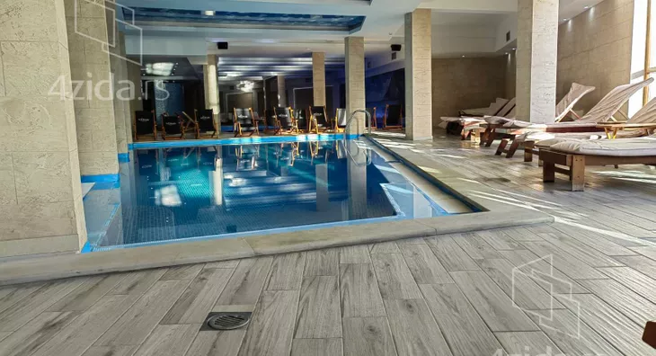 Povezan je toplom vezom sa 2 SPA Welness centra (3 bazena, turska kupatila, tepidarijumi, slane sobe, saune...), kao i sa 2 restorana sa internacionalnom kuhinjom.
