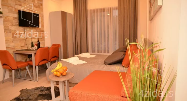 Luksuzno i funkcionalno opremljen studio apartman, apartman je pogodan za boravak 3 osobe. U cenu ukljucen kompletan namestaj i inventar.