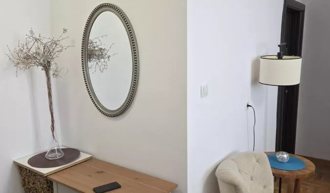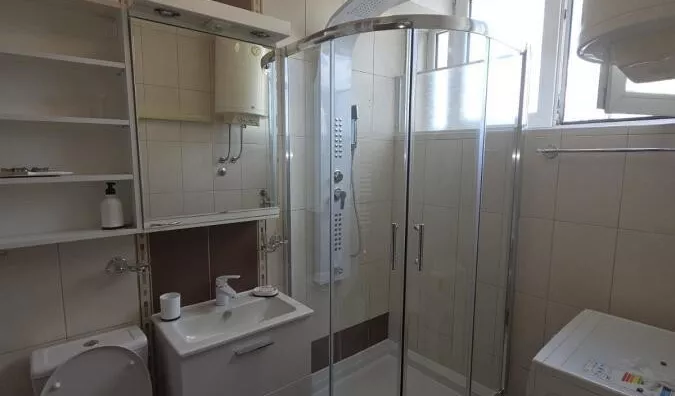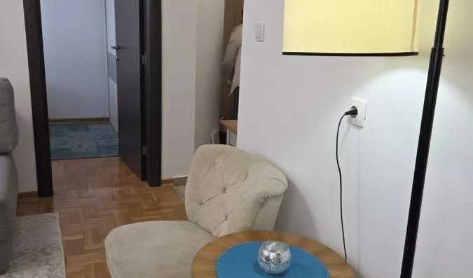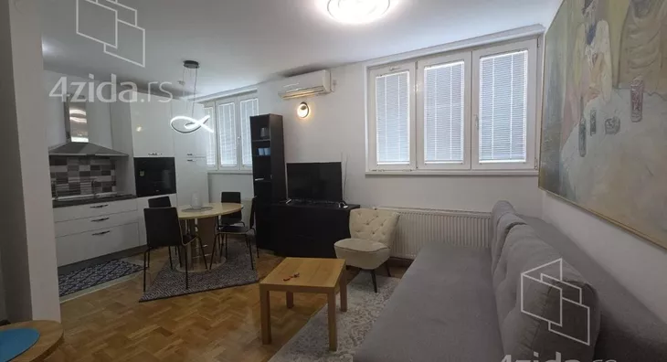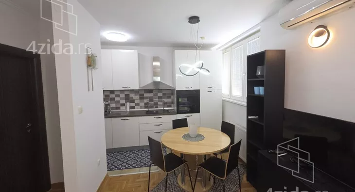 - Opremljenost: Namešteno - internet, interfon, TV, klima, veš mašina, sudo mašina, frižider, rerna, ležaj, plakar, kanalizacija