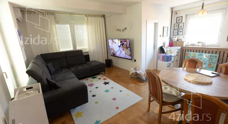 Stan je renoviran, nova stolarija, nova kuhinja, parket, sanitarije u kupatilu.