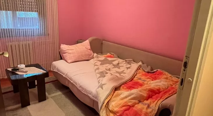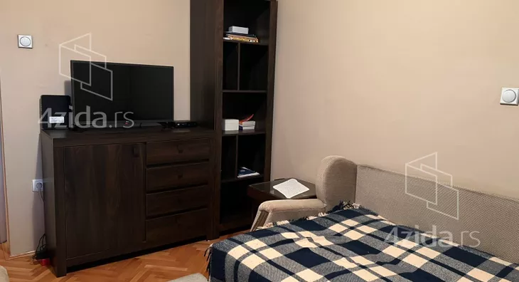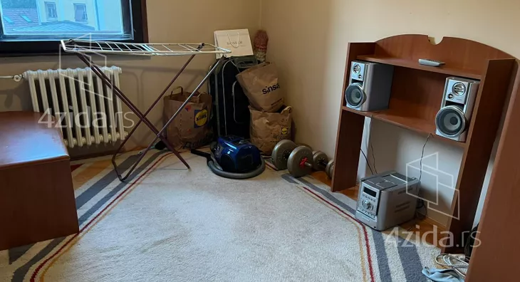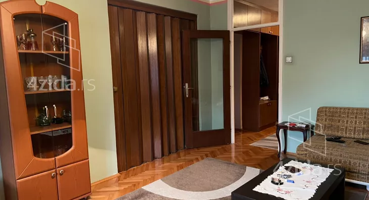 Funkcinalnog rasporeda,gde je spavaci deo odvojen hodnikom od dnevnog boravka kuhinje i trpezarije, delimično renoviran, na podu je parket stolarija je drvena sa roletnama.U hodniku je su postavljeni ormari pa su sobe rasterećene od stvari.