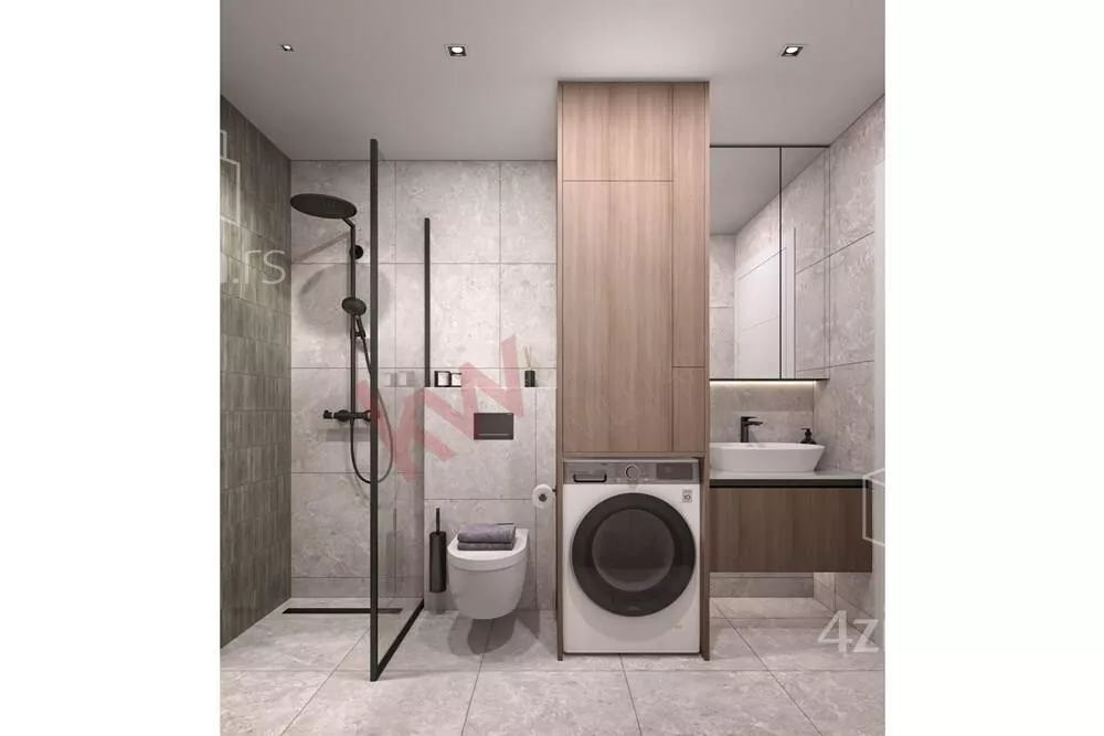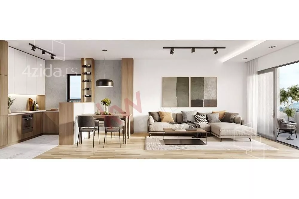 Projektovana završna obrada stana: aluminijumska spoljašnja stolarija (antracit boja) sa staklima sa termo prekidom aluminijumskim roletnama, sigurnosna spoljašnja i unutrašnja vrata visokog kvaliteta, podovi od prirodnog drveta, keramika i sanitarije I klase. Ono što ovaj stan izdvaja od ostalih na tržištu je autonomni sistem grejanja i hlađenja toplotnom pumpom vazduh - vazduh i unutrašnjom jedinicom u svakoj stambenoj prostoriji, što omogućava nezavisni režim grejanja i hlađenja prostorija, ekonomičnost u potrošnji (odnos utrošene i emitovane energije 1:3) i daljinsko upravljanje istim. Stan poseduje i senzore za dojavu vlage i požara vlasniku.