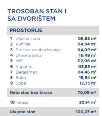 Predstavljamo vam trosoban stan od 103.24m2 na 1 spratu od postojećih 13