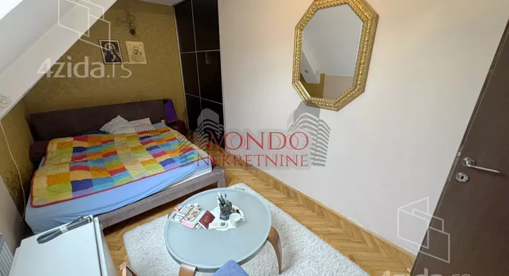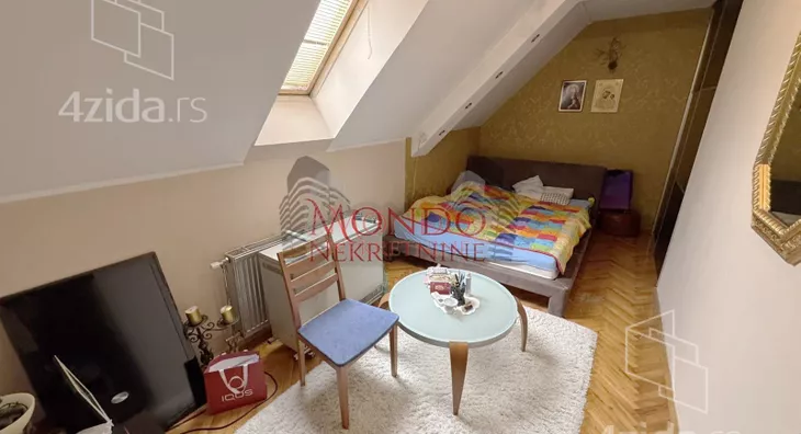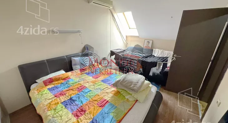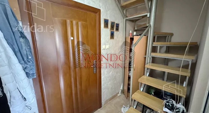Trosoban stan u blizini Crvenog pevca, ul Dragise CvetkovicaStan se nalazi u stambenoj zgradi iza Makove kuce na V-spratu bez lifta, povrsine od 85m2 sa etaznim grejanjem na struju. Stan se sastoji iz dva nivoa od koga su na donjem spratu dnevni boravak sa kuhinjom i trpezarijom, hodnika i toaleta. Na gornjem spratu su dve spavace sobe, hodnik i kupatilo.